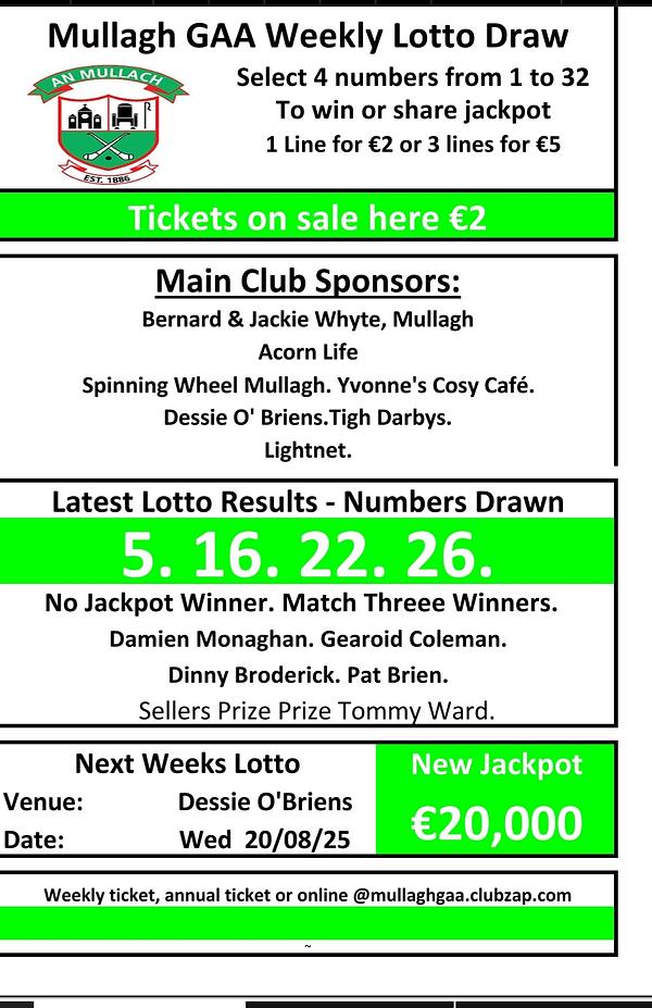 Mullagh GAA Lotto Result