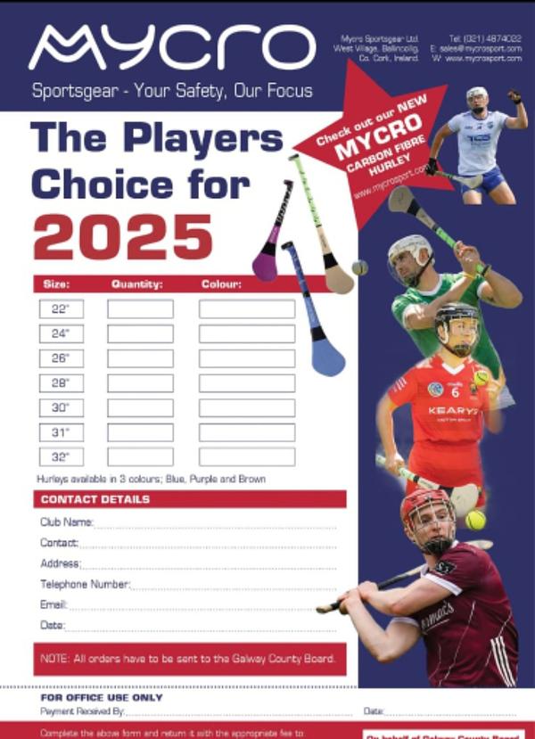 Galway GAA subsidised hurl and helmet scheme (juvenile). See attached information. If you are interested in purchasing a hurl and/ or helmet through Mullagh GAA under this scheme then please contact Eric Ward (0877726299) or simply send a message including child's name, hurl/ helmet size and colour before Wednesday night, 19th September.