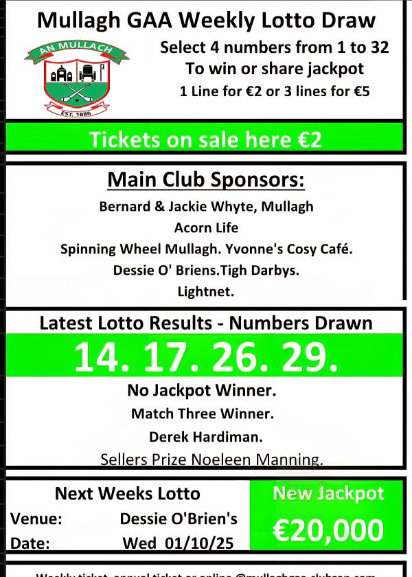 Thank you for supporting the Club Lotto. Congratulations to the match three winner