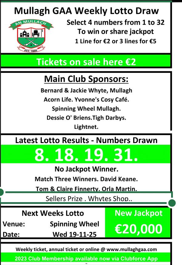 Congratulations to the match three winners and thank you everyone for supporting the Club Lotto.