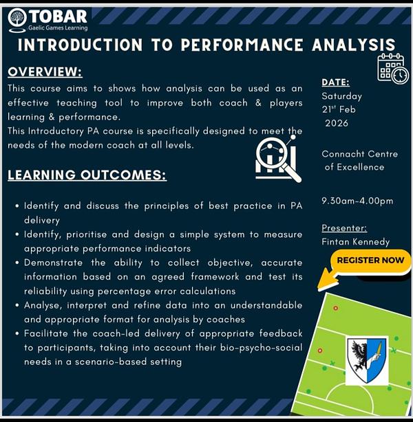 This short intro session will give a basic overview of performance analysis, the key tools used, and how it supports coaches and players at all levels, from club to county. 💻🎥