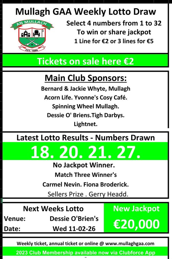 Congratulations to the match three winners and thank you everyone for supporting the Club Lotto